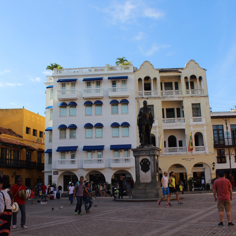 Back in 1600, the front of the plaza was the place to commercialize slaves. For three months they traveled in the ship holds, crossing oceans, chained, with no food or drink, getting a lot of diseases. Many of them died in the journey. Once they arrived, the company who owned them branded them with a logo. The amount of people being branded was so high that that area of the city was characteristic for a very bad smell, like rotten meat. The criteria to price the slaves was based on physical skills. Pedro Claver was a priest and fought against slavery his entire life and was well known as "Slave of the Blacks" his sculpture is all over the city.